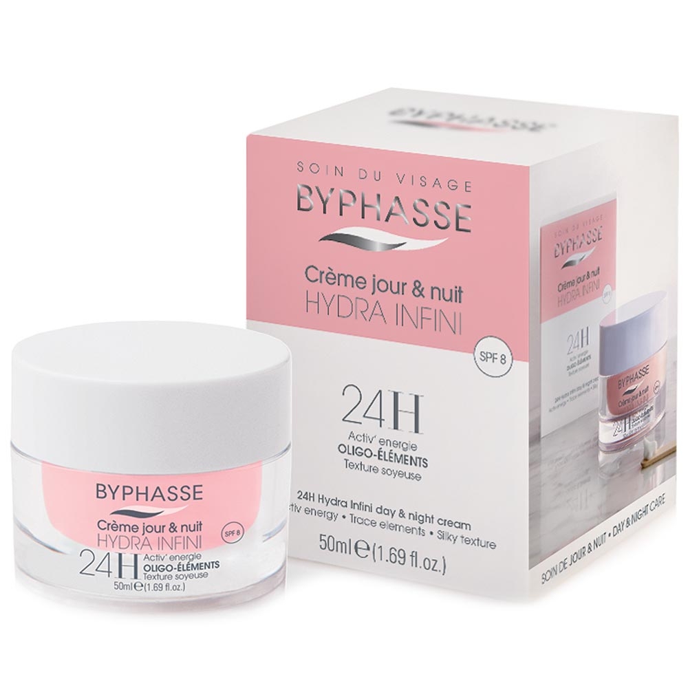 Hydratez en profondeur et durablement votre épiderme avec la Crème Jour & Nuit 24h Hydra Infini Byphasse et son association d’oligo-éléments, minéraux indispensables qui renforcent l’énergie et le bon fonctionnement des cellules cutanées. Une peau douce et hydratée pendant 24h.