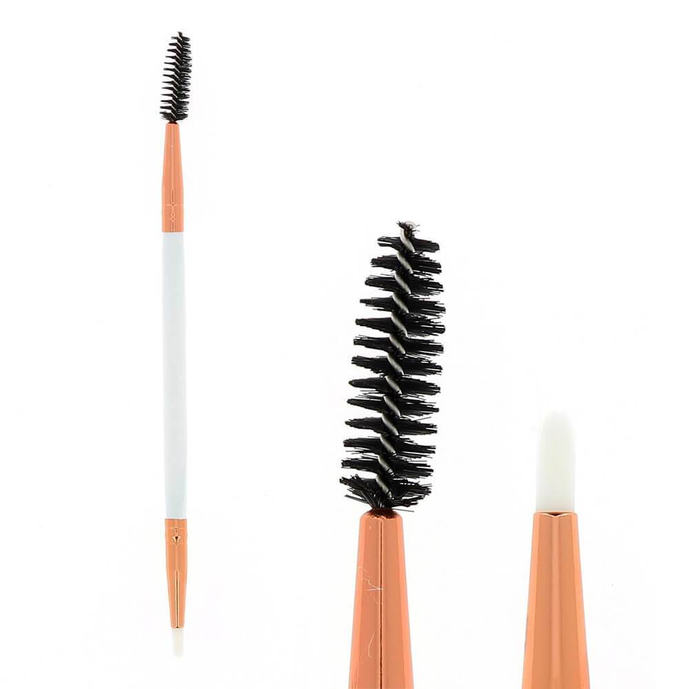 Spécialement conçu pour le maquillage des sourcils, ce pinceau double embout se compose :