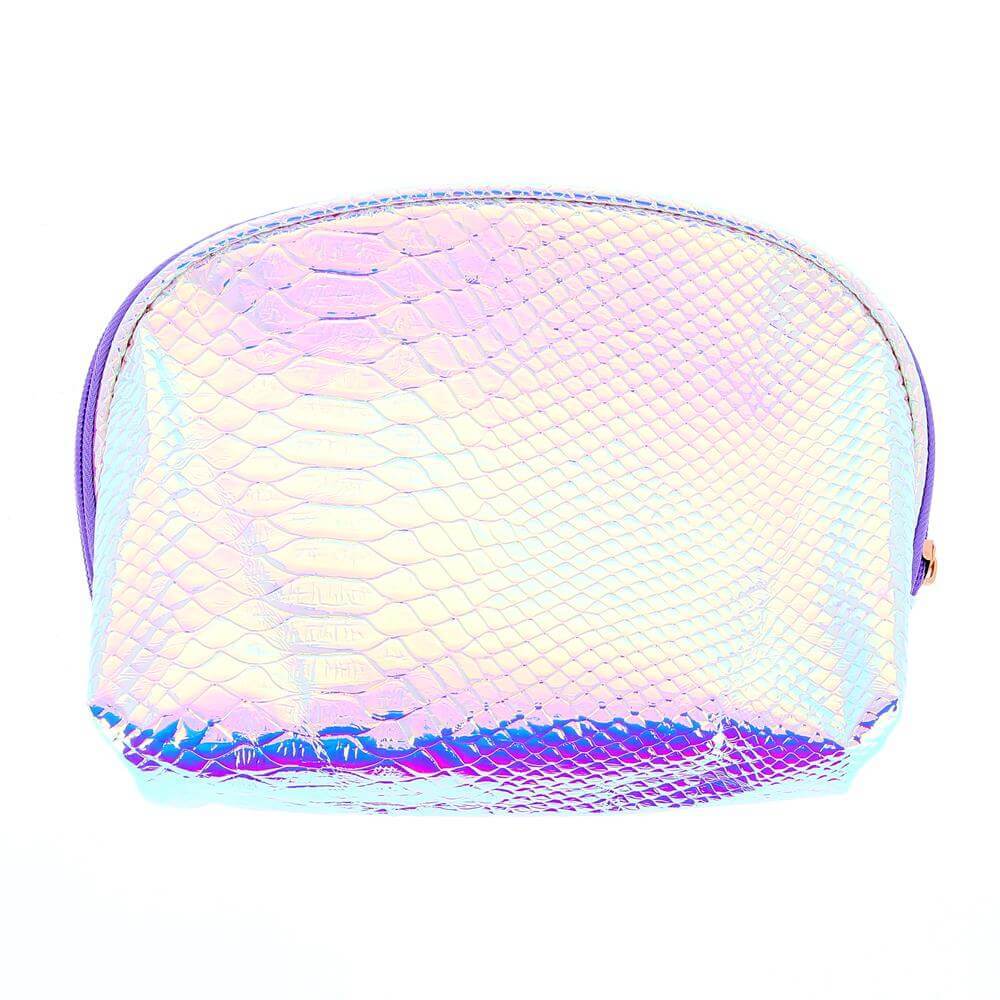 Cette trousse de toilette allie un design holographique et des finitions solides.