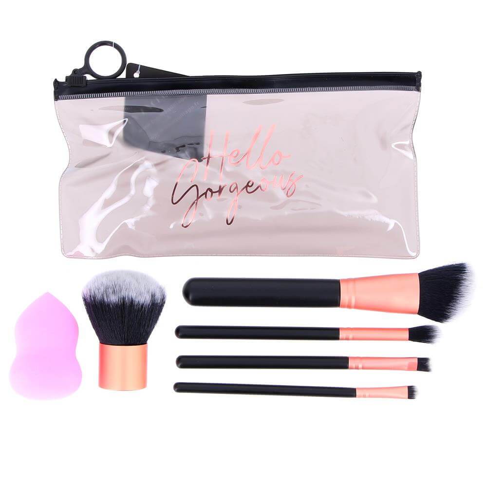 Cette trousse de voyage contient 5 pinceaux à maquillage et 1 blender pour vous permettre d'avoir vos accessoires makeup les plus utiles toujours sous la main !