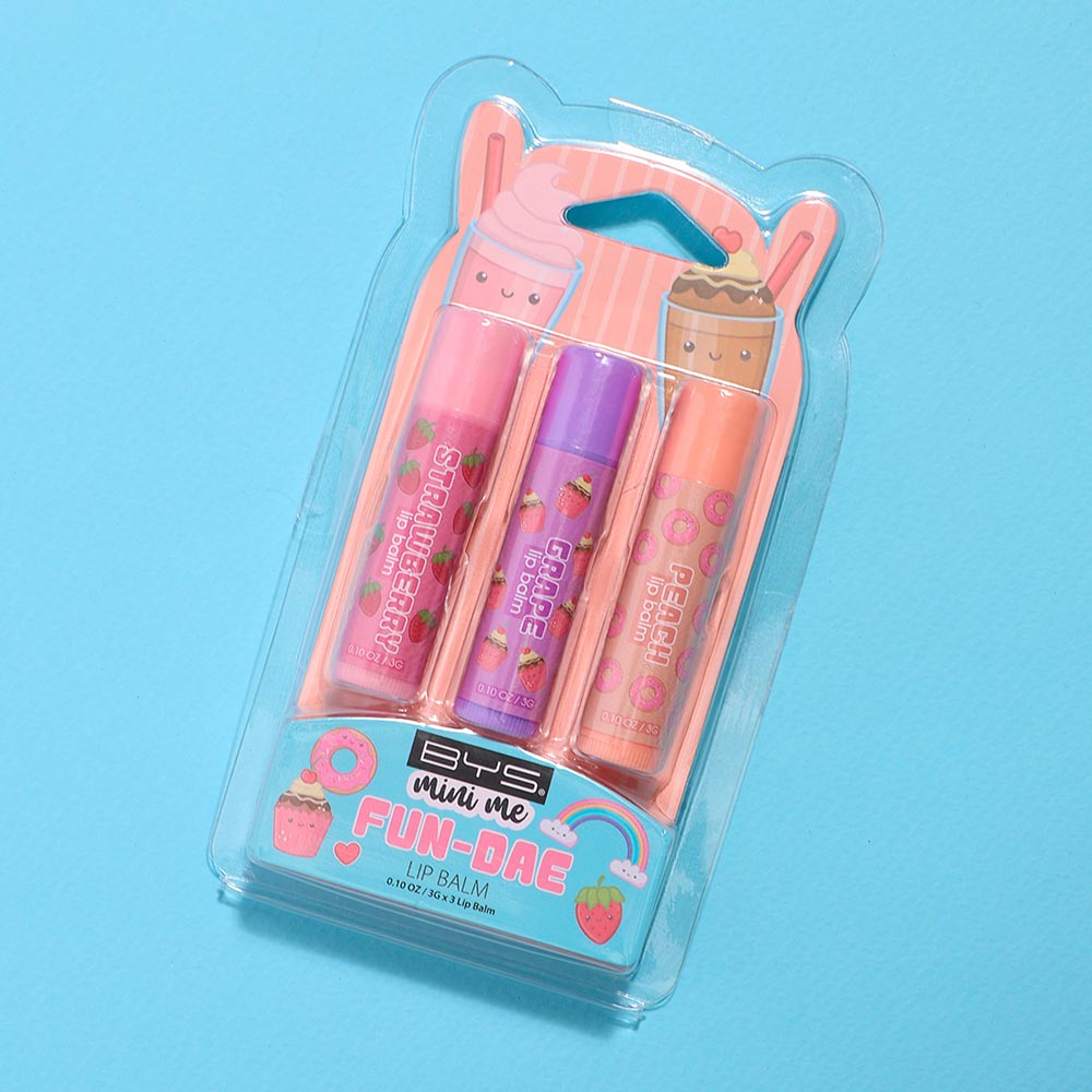 Chouchoutez vos lèvres avec le coffret Baumes à Lèvres Parfumés Fun-Dae Mini Me. Trois mini baumes gourmands aux parfums fruités et délicieux, qui hydratent, protègent et apportent une touche de fraîcheur tout au long de la journée. Parfaits à glisser dans votre sac pour des lèvres douces et irrésistibles où que vous soyez.Conseils d'utilisation