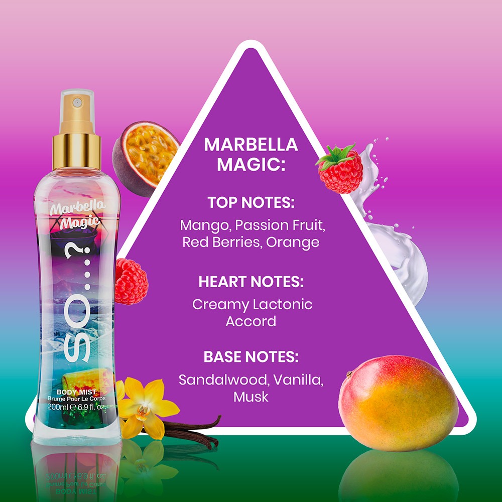 Brume Corps Marbella Magic - Mangue, Fruit de la Passion, Vanille Musquée - 200ml