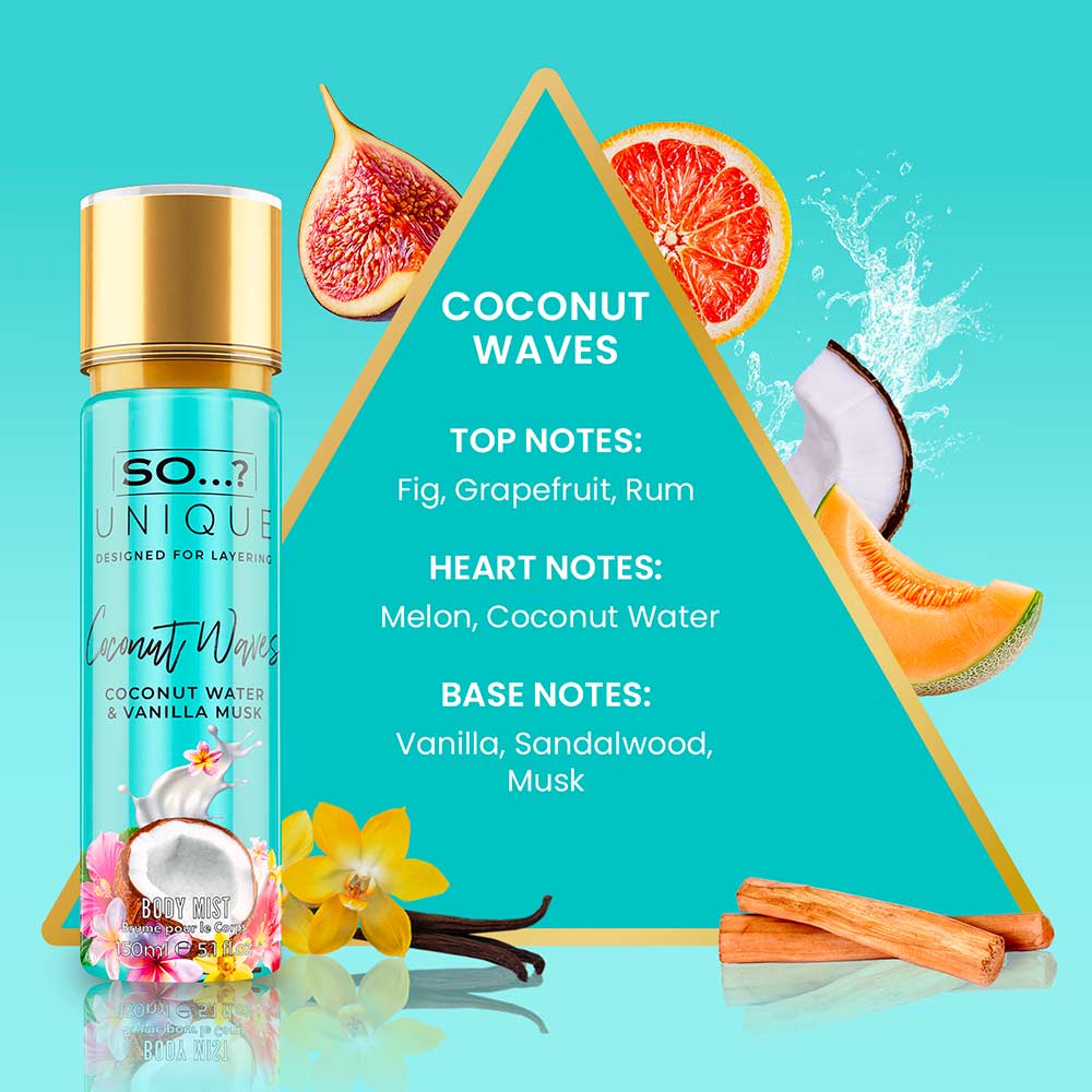 La Brume Corps So Unique Coconut Waves vous offre une expérience sensorielle tropicale avec ses notes de noix de coco délicatement sucrées et de vanille douce. Un parfum frais et envoûtant qui rappelle les vagues et la chaleur des îles paradisiaques.Conseils d'utilisation
