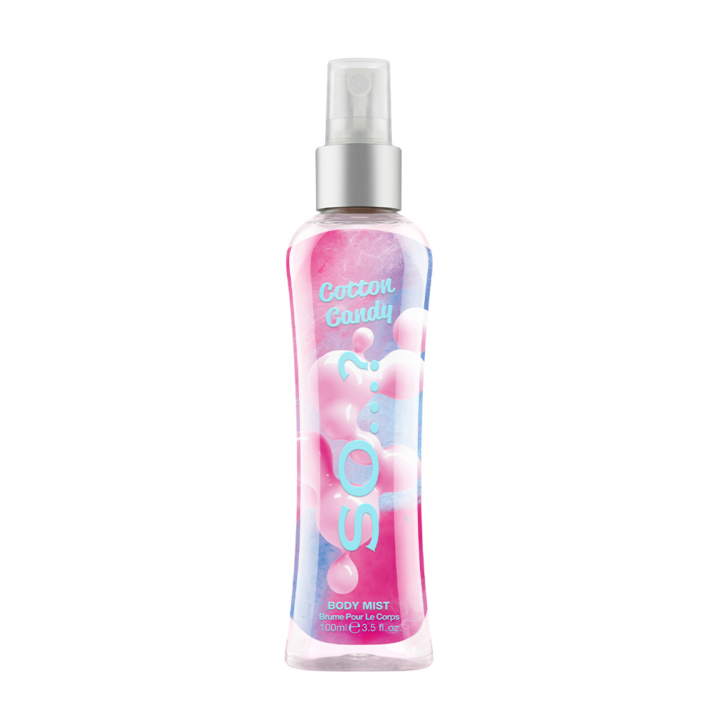 Evadez-vous dans le nuage de douceur de la brume parfumée Cotton Candy SO...? Inspirées de tous les plaisirs de la fête foraine, les notes poudrées de la barbe à papa se mêlent ici à un soupçon de framboise, de vanille, de muguet, de chocolat et de pomme d'amour. Tout simplement déliceux !Conseils d'utilisation