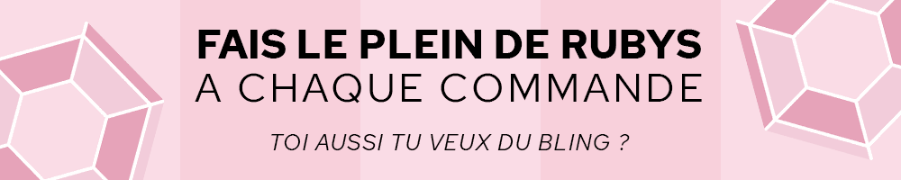 - À chaque commande passée en étant connecté(e) à votre compte client, vous recevrez automatiquement des RUBYS. Le principe est simple : 1€ dépensé = 10 RUBYS (hors frais de port).
