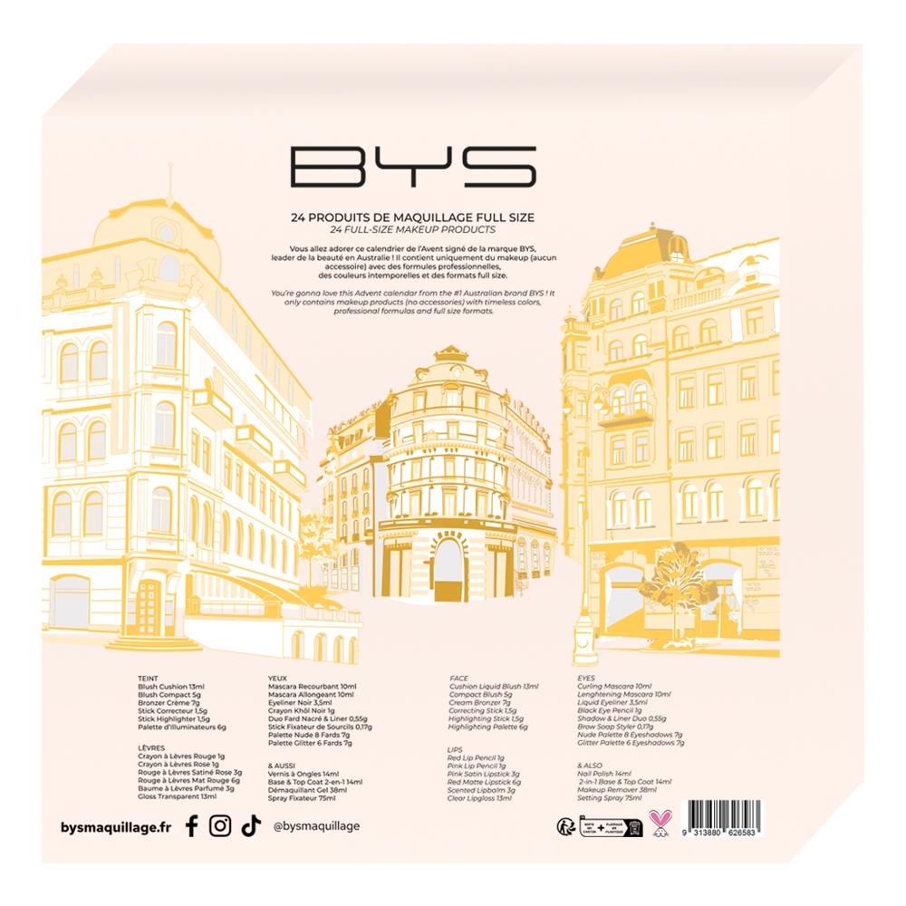 A noter : le contenu des calendriers BYS City of Light, Nature's Holiday et Christmas Elegance est identique, seul le design du coffret change.Composition