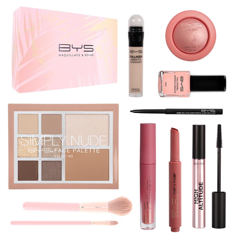 Notre Coffret Noël 2025 Simply Nude réunit l’essentiel du maquillage pour sublimer le teint, le regard et les lèvres dans une harmonie naturelle et raffinée. Idéal à offrir ou à s’offrir, il contient une palette 8 fards aux nuances nudes, un mascara waterproof pour des cils allongés, un liner gel noir tenue 16h pour un tracé précis, ainsi qu’un anti-cernes au collagène (teinte au choix) qui lisse et illumine le contour des yeux. Le coffret comprend aussi un blush satiné rose ambré, un rouge à lèvres mat crémeux, un baume repulpant, un vernis Baby Pink et deux pinceaux professionnels Rose Gold pour une application parfaite. Un coffret complet, chic et pratique, pour un maquillage nude élégant au quotidien ou pour les fêtes.