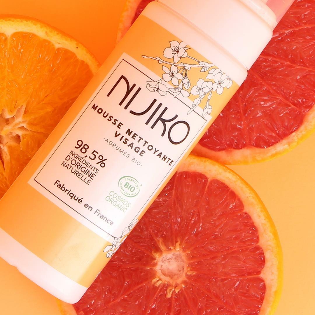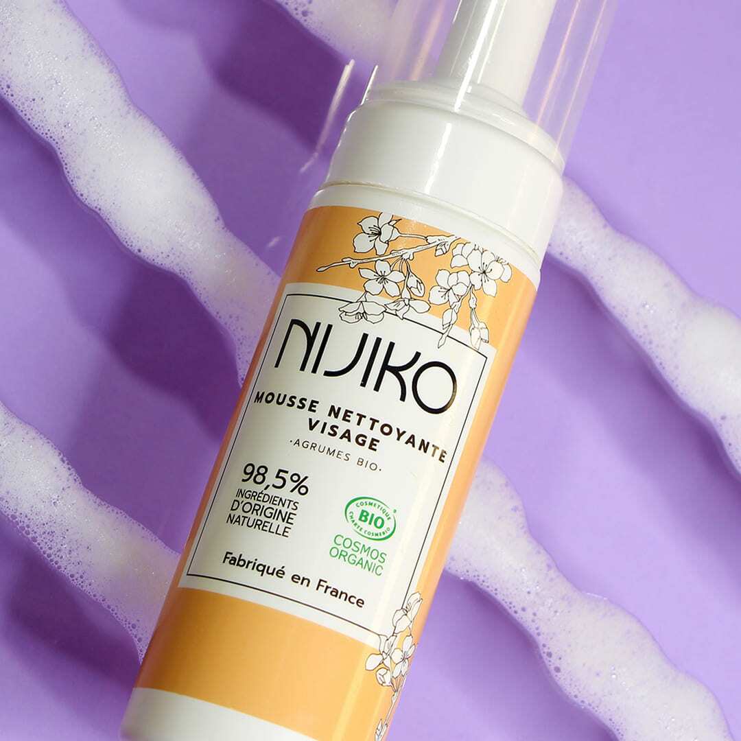 Enrichie en extraits de citron et de pamplemousse aux propriétés purifiantes, la mousse pour le visage aux agrumes Nijiko élimine en douceur les impuretés, clarifie le teint et aide à resserrer les pores.