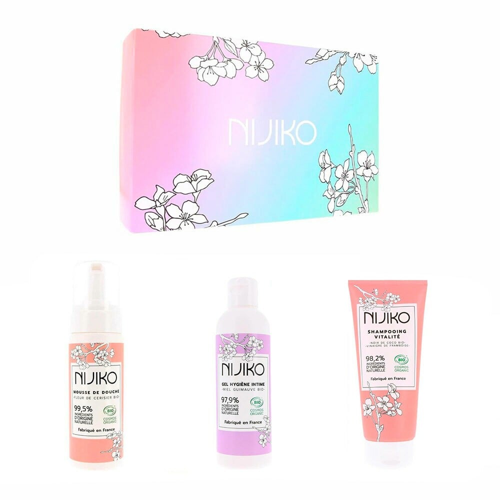 Le gel hygiène intime bio Miel Guimauve Nijiko respecte la sensibilité des muqueuses et grâce à l'acide lactique, il préserve l'équilibre du pH et de la flore intime.Enfin, le shampooing bio vitalité Nijiko lavera votre cuir chevelu en douceur et laissera vos cheveux intensément brillants.