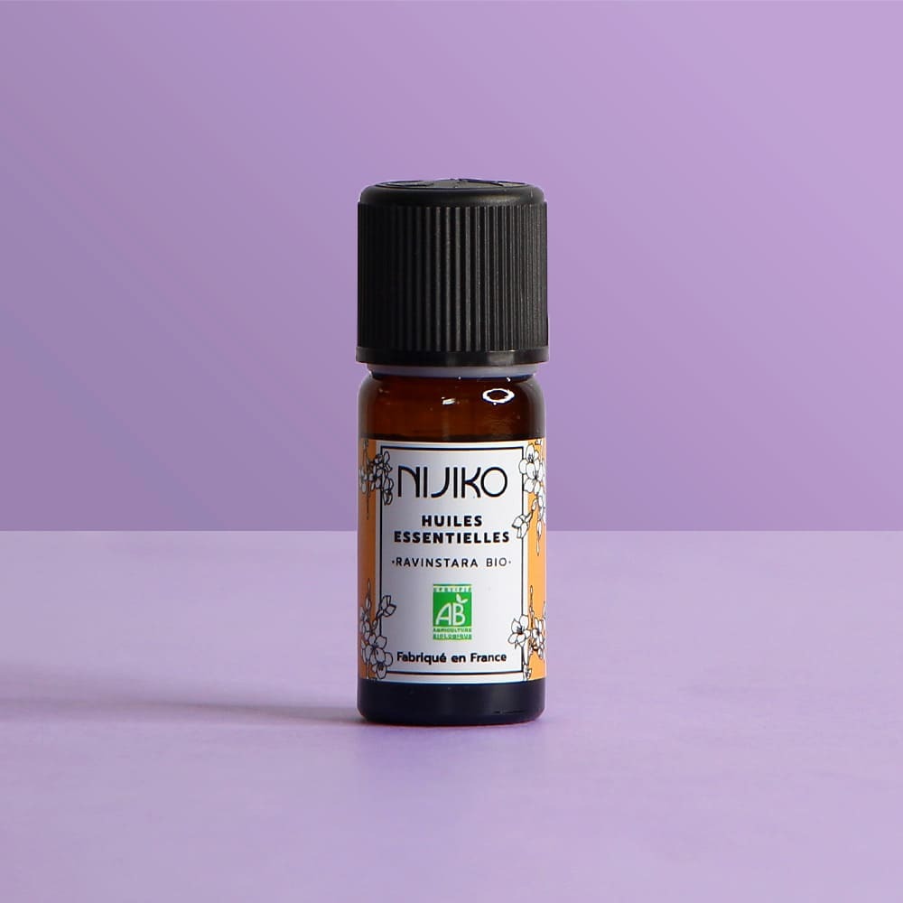 Très prisée l’hiver, l’huile essentielle de Ravintsara permet de renforcer l’organisme et de stimuler l’immunité grâce à ses propriétés antivirales et antibactériennes. Diluée dans un bain chaud ou en inhalation, elle soulage les symptômes du rhume et dégage les voies respiratoires, facilitant ainsi le sommeil. Elle est également très efficace pour accélérer la disparition des boutons de fièvres.