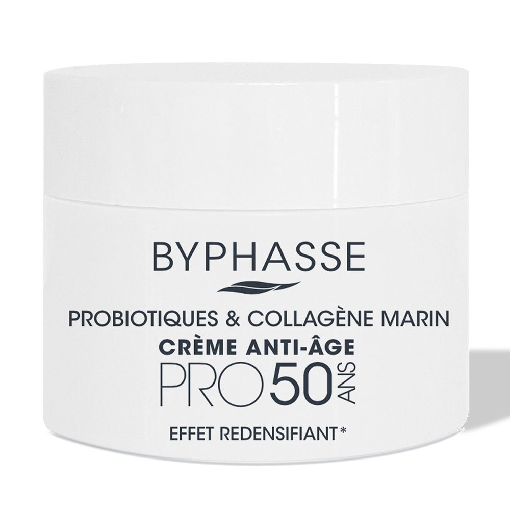 Favorisez le renouvellement des fibres de collagène de votre peau avec la Crème Anti-Âge Pro 50 ans Collagène Byphasse. Une crème riche en antioxydants qui rétablit peu à peu l’élasticité de votre peau.Composition