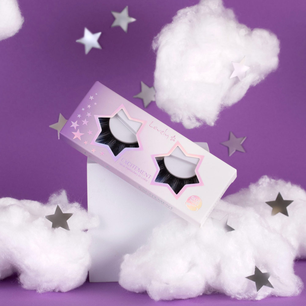 1. Utilisez une pince à épiler ou vos doigts pour détacher délicatement les cils de l'emballage. Posez-les sur votre paupière pour mesurer leur taille. S'ils doivent être raccourcis, coupez-les sur le bord extérieur (là où les faux cils sont les plus longs). 2. Appliquez une fine couche de colle sur le bord supérieur des cils. Laissez reposer pendant 30 secondes environ. 3. Placez les faux-cils aussi près que possible de vos cils naturels et appuyez doucement le long de la ligne de colle. Attention : même si les cils se ressemblent, ils ont deux formes différentes. Choisissez la forme appropriée pour l'œil droit et l'œil gauche.Composition