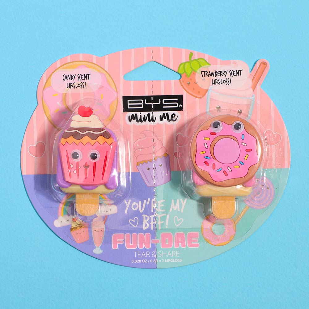 Craquez pour la gourmandise avec le duo de Gloss à Lèvres Parfumés Fun-Dae Mini Me. Deux gloss au fini brillant et aux parfums sucrés, qui hydratent et subliment les lèvres d’une touche fun et irrésistible. À emporter partout pour une bouche douce, brillante et délicieusement parfumée.Conseils d'utilisation