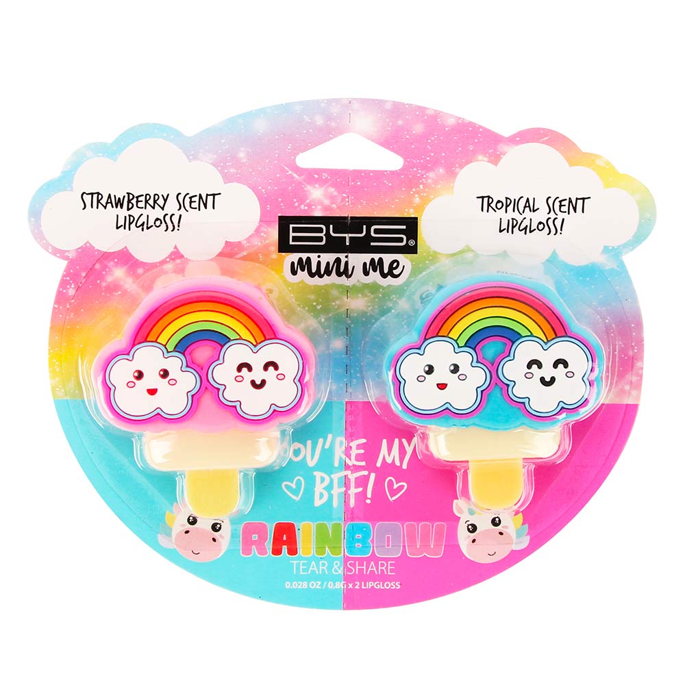 Craquez pour ce duo de gloss aux formules fondantes et parfumées ! Les 2 boîtiers aux décors arc-en-ciel renferment chacun un baume translucide à appliquer au doigt pour une discrète touche de brillance. 2 senteurs assorties : fraise et fruits tropicaux.Conseils d'utilisation