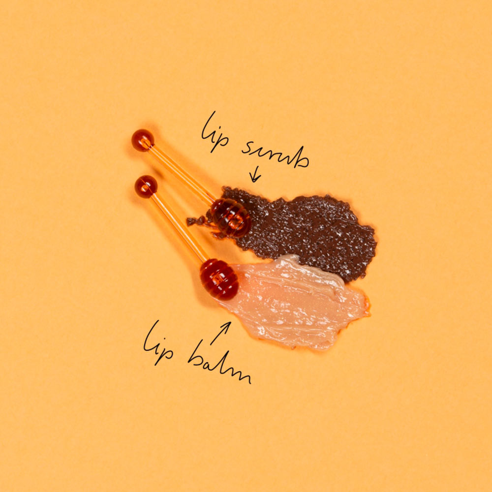 Prélevez une pointe de gommage à l'aide de la mini cuillère à miel et massez sur les lèvres avec des mouvements circulaires.Composition
