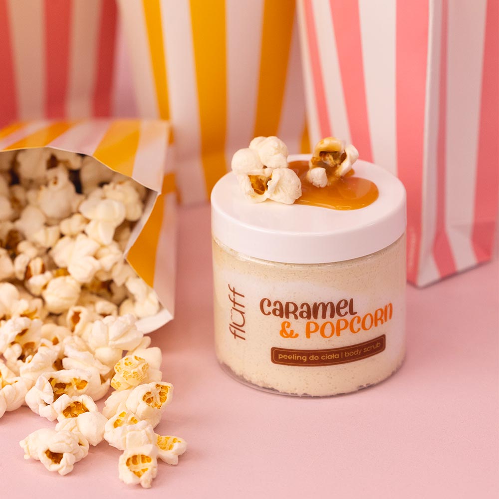 Gommage corporel au caramel et au pop-corn : Non seulement il vous surprend par l'arôme inhabituel du pop-corn salé recouvert de caramel sucré, mais il élimine également efficacement les impuretés et les cellules mortes de la peau. Enrichi en glycérine et en sorbitol, le gommage hydrate, adoucit et protège la peau contre la perte d'hydratation. L'association de l'huile de tournesol et de la vitamine E accélère la régénération, améliore la fermeté et retarde les processus de vieillissement cutané.Conseils d'utilisation