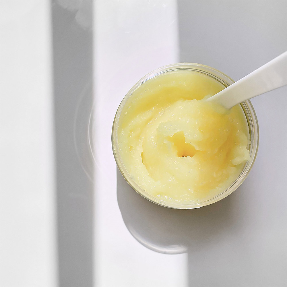 Combinant du beurre de karité, de l'huile de ricin et des grains exfoliants, ce gommage élimine les cellules mortes et tonifie la peau en lui procurant souplesse et nutrition. A la fois gourmand et fruité, son délicieux parfum de tarte au citron laisse un sillage irrésisible sur la peau !Conseils d'utilisation