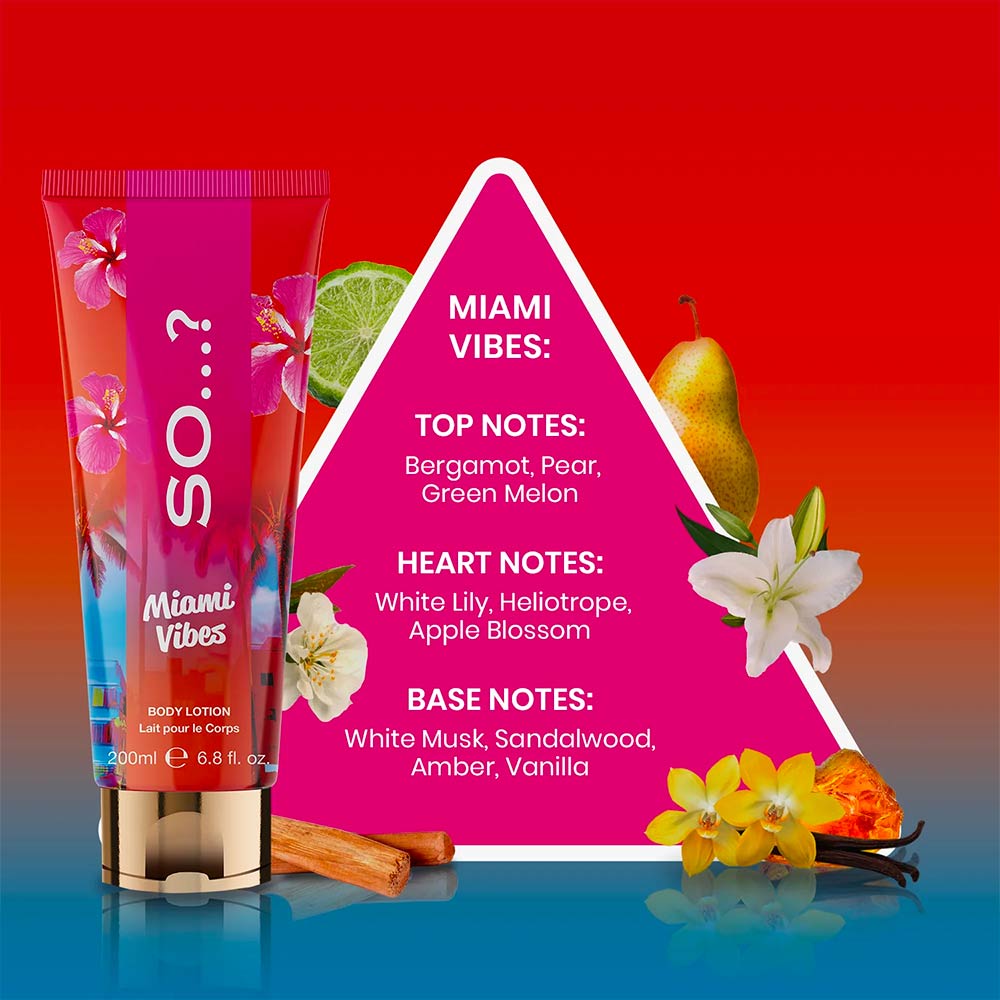 Offrez à votre peau une sensation de douceur et de fraîcheur avec notre Lait pour le Corps Miami Vibes. Inspiré par l'énergie vibrante et les parfums envoûtants de la ville ensoleillée de Miami, ce lait pour le corps hydratant vous transporte instantanément vers une escapade tropicale où la beauté et la vitalité sont à l'honneur.Conseils d'utilisation