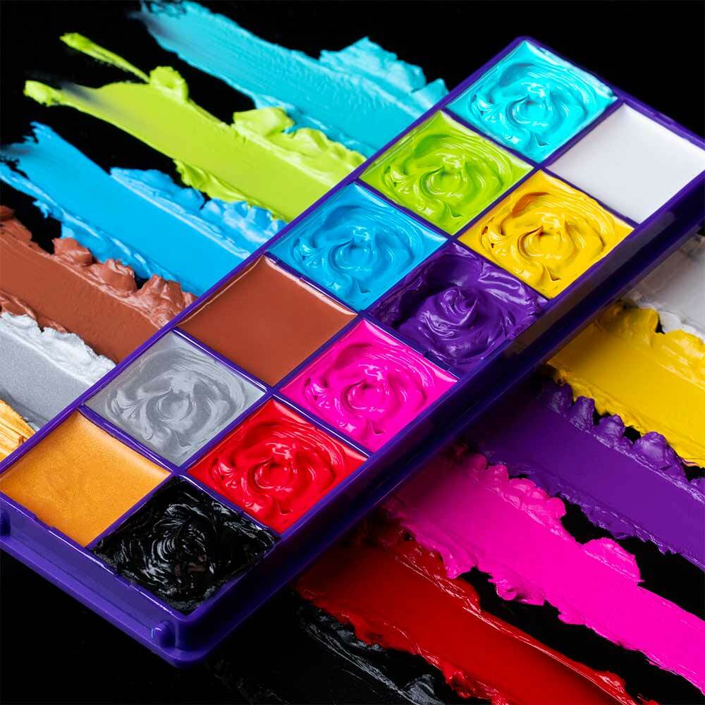 Cette palette comprend 12 couleurs intensément pigmentées, parfaites pour le visage et le corps. Les fards crémeux offrent une couverture exceptionnelle et une texture facile à travailler, idéale pour réaliser des looks artistiques et audacieux. Les couleurs peuvent être mélangées librement, vous permettant de créer une infinité de nuances personnalisées. Que ce soit pour un maquillage de scène, un événement festif ou une soirée à thème, la Palette Loud & Proud est votre alliée pour exprimer votre personnalité sans limites. Adoptez cette palette aux couleurs lumineuses et transformez votre maquillage en œuvre d'art.Conseils d'utilisation