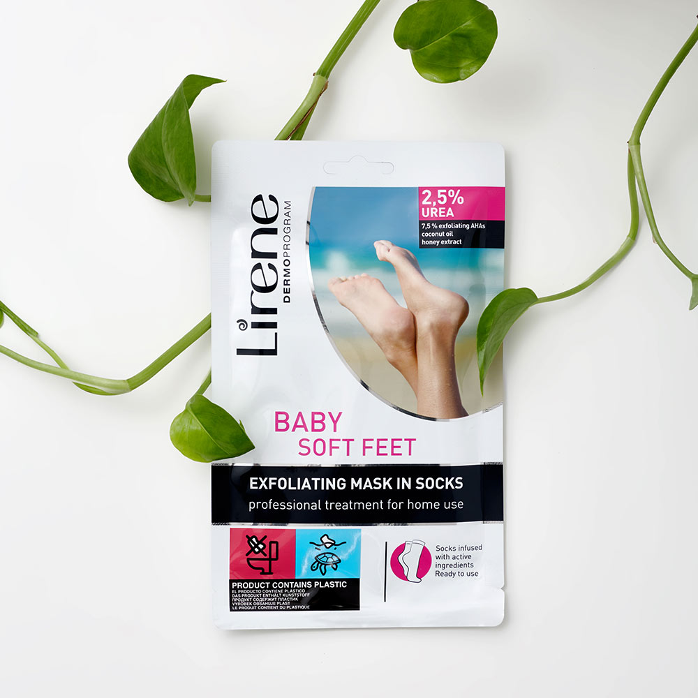 Le Masque Chaussettes Pieds Exfoliant & Lissant LIRENE est un soin pratique conçu pour retrouver des pieds doux et nets en quelques jours. Imprégnées d'une solution enrichie en acides exfoliants comme l'acide lactique et l'acide glycolique, ces chaussettes aident à éliminer progressivement les cellules mortes. L'urée et les extraits végétaux contribuent à maintenir l'hydratation et à adoucir la peau, tandis que des huiles nourrissantes comme la noix de coco et l'olive apportent confort et souplesse. Après utilisation, la peau des pieds paraît plus lisse, plus uniforme et visiblement renouvelée. Idéal pour préparer les pieds avant les beaux jours ou entretenir leur douceur tout au long de l'année.Conseils d'utilisation