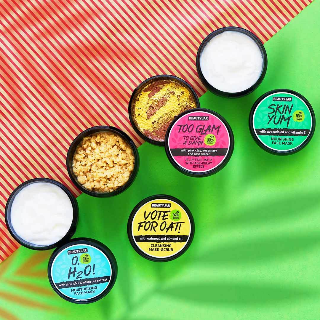 Chauffez 1 à 2 noisettes de masque entre vos mains avant de l'appliquer sur peau sèche, sur l'ensemble du visage et du cou.