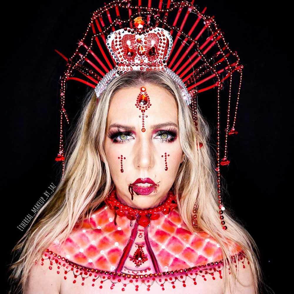 Les fards peuvent s’appliquer sur le visage, le corps ou le latex à l’aide de l’outil de votre choix : doigt, pinceau, éponge, spatule…