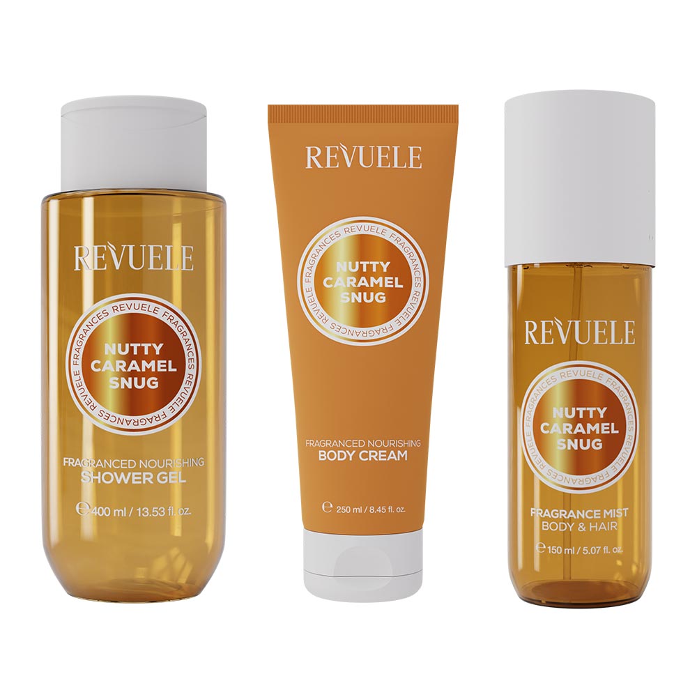 Le Kit Trio Parfumé Caramel Beurre Salé, Fève de Tonka & Noix de Macadamia réunit trois soins sensoriels pour un rituel corps délicieusement réconfortant. La Brume pour le Corps 150 ml enveloppe la peau d’un parfum chaleureux et gourmand mêlant caramel fondant, douceur de la fève de tonka et notes suaves de macadamia. Le Gel de Douche 400 ml nettoie délicatement tout en diffusant cette fragrance sucrée et addictive. La Crème pour le Corps hydrate la peau et la laisse douce et veloutée, prolongant le sillage parfumé tout au long de la journée. Ensemble, ces trois indispensables créent un rituel cocooning complet pour une peau propre, nourrie et subtilement parfumée.Conseils d'utilisation