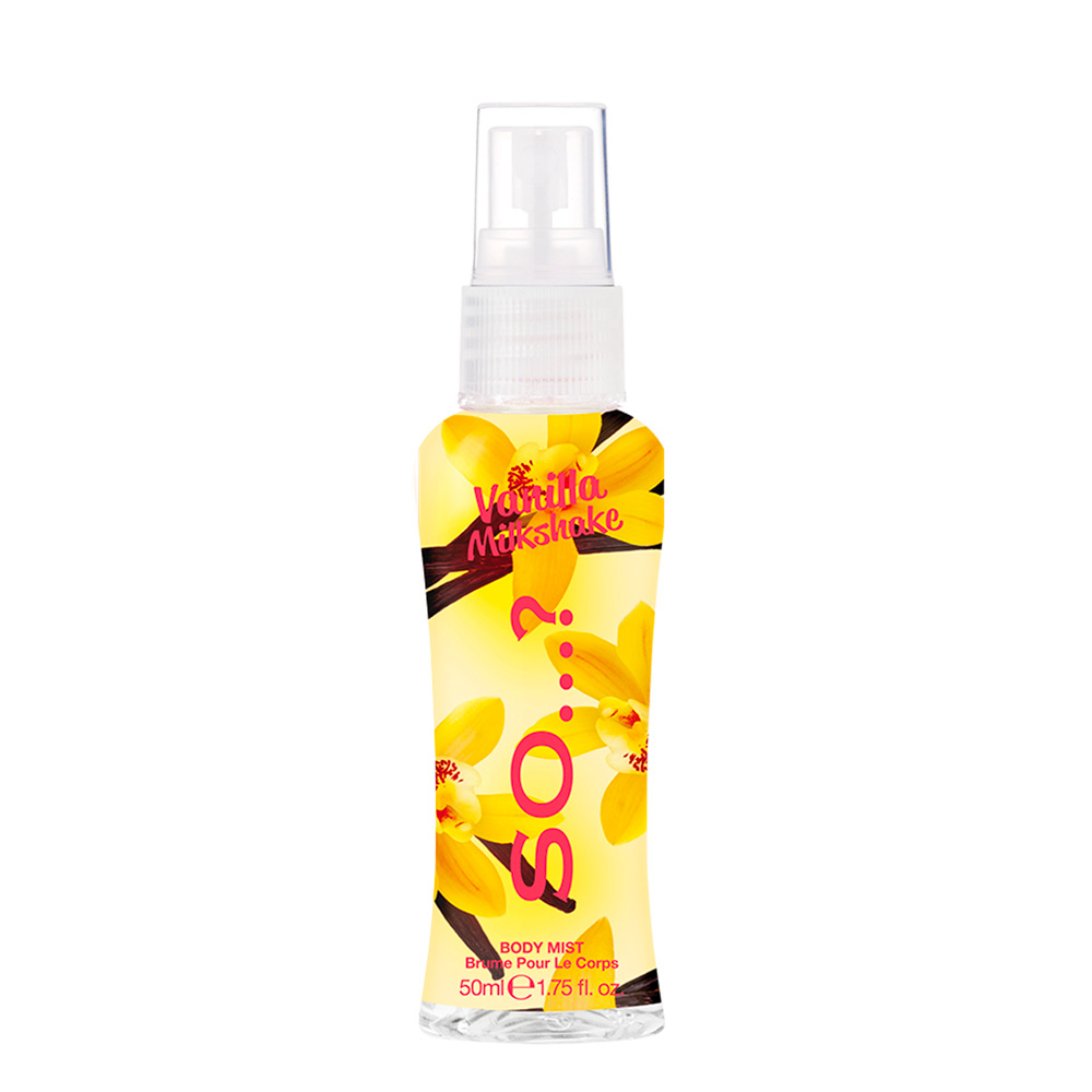 Laissez-vous séduire par la brume SO…? Vanilla Milkshake en format mini et son parfum sucré à la vanille agrémenté d'une touche de pêche et de prune pour encore plus de gourmandise. Son format 50ml vous permet de transporter votre brume partout avec vous.Conseils d'utilisation