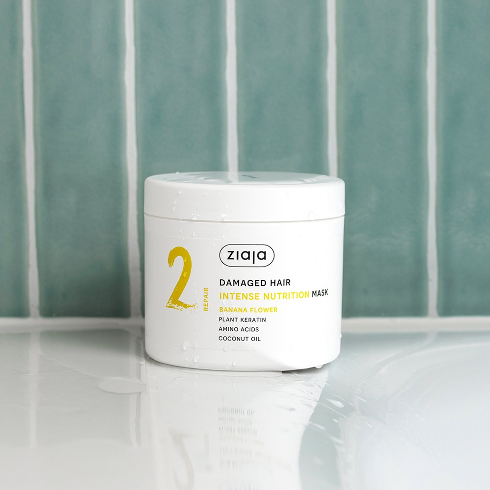 Le Masque Réparateur pour Cheveux Abîmés à la Banane de Ziaja permet de combler les brèches du cheveu et de renforcer la fibre capillaire. Il contient également de l'huile de Coco, de la Kératine végétale et des Acides Aminés pour apporter un supplément de nutrition aux longueurs. La chevelure retrouve un toucher intensément soyeux.
