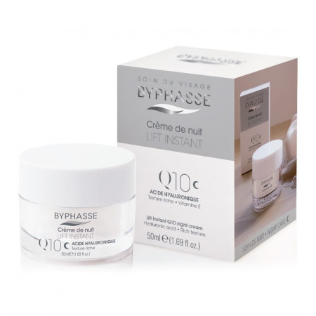 La Crème de Nuit Lift Instant Q10 Byphasse répare profondément les cellules de la peau et améliore son élasticité grâce à sa texture riche et ultra nourrissante. Votre peau est douce et lisse, elle retrouve une nouvelle jeunesse.