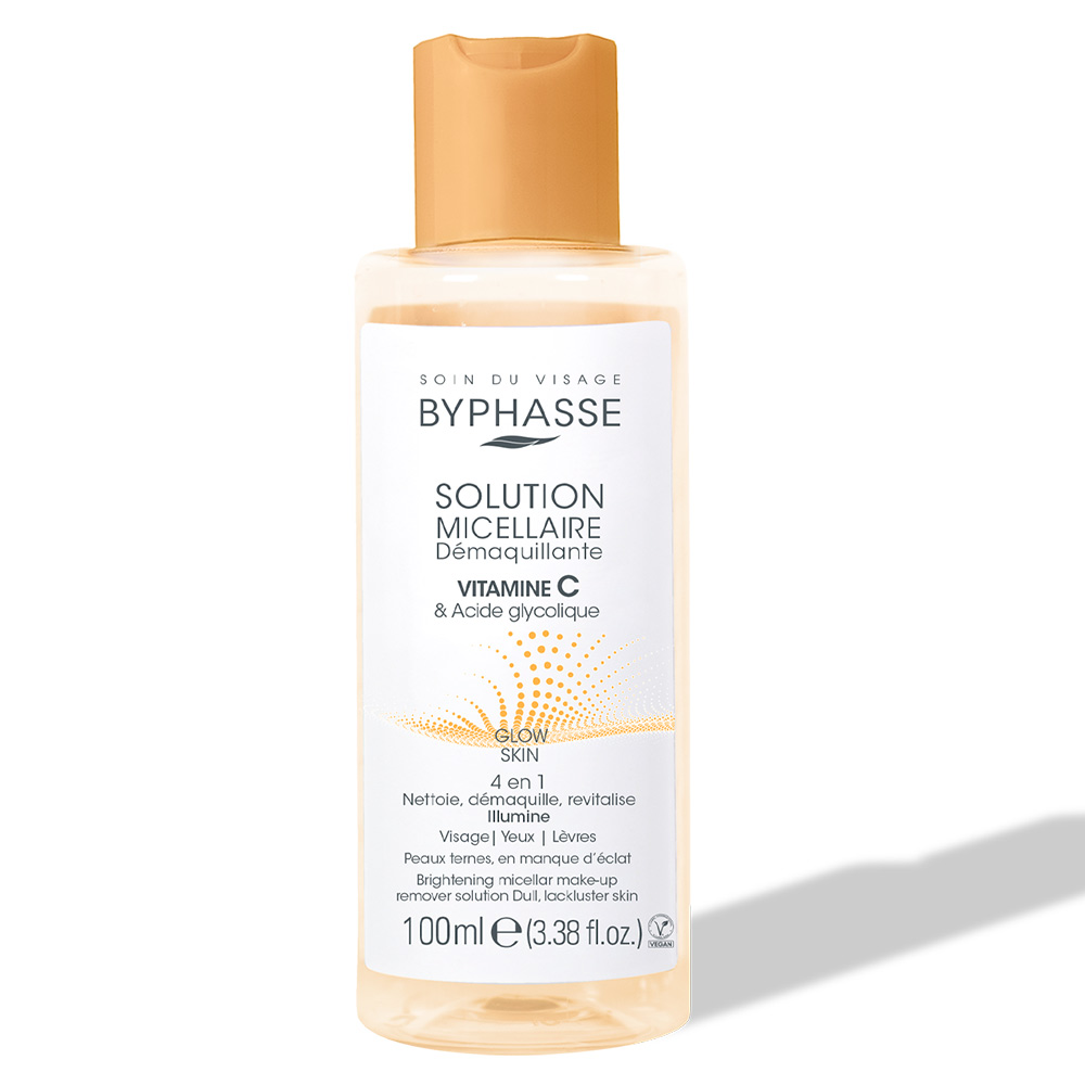 La Solution Micellaire Démaquillante Vitamine C & Acide Glycolique de Byphasse nettoie et démaquille efficacement le visage, les yeux et les lèvres, tout en respectant l’équilibre de la peau.