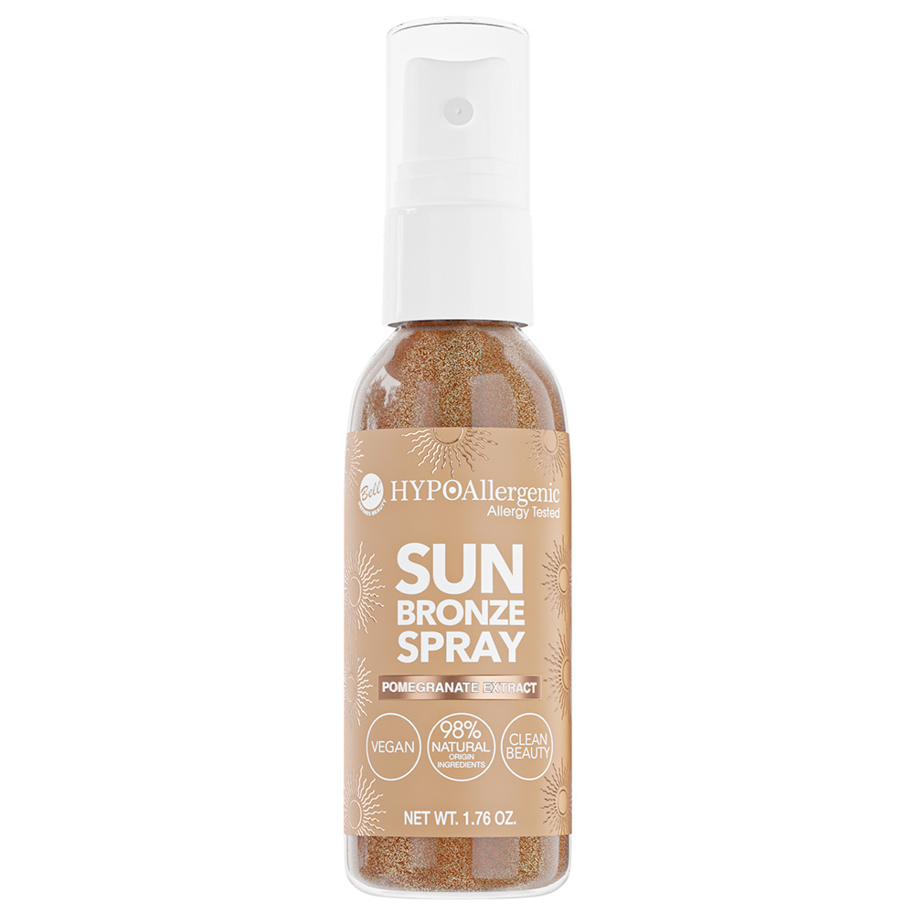 Accentuez votre bronzage tout en illuminant votre peau avec ce spray nacré pour le visage et le corps ! Sa formule teintée imite parfaitement la couleur du hâle et permet de mettre en valeur les jambes, les épaules, le décolleté... sans effet autobronzant ni risque de taches ou de traces oranges. Composé à 98% d'ingrédients d'origine naturelle, le Spray Sublimateur de Bronzage de Bell est sans parfum et a été testé sous contrôle dermatologique afin de garantir une tolérance optimale aux peaux sensibles. Il renferme de la glycérine végétale et des extraits de grenade pour un effet à la fois hydratant et antioxydant.Composition