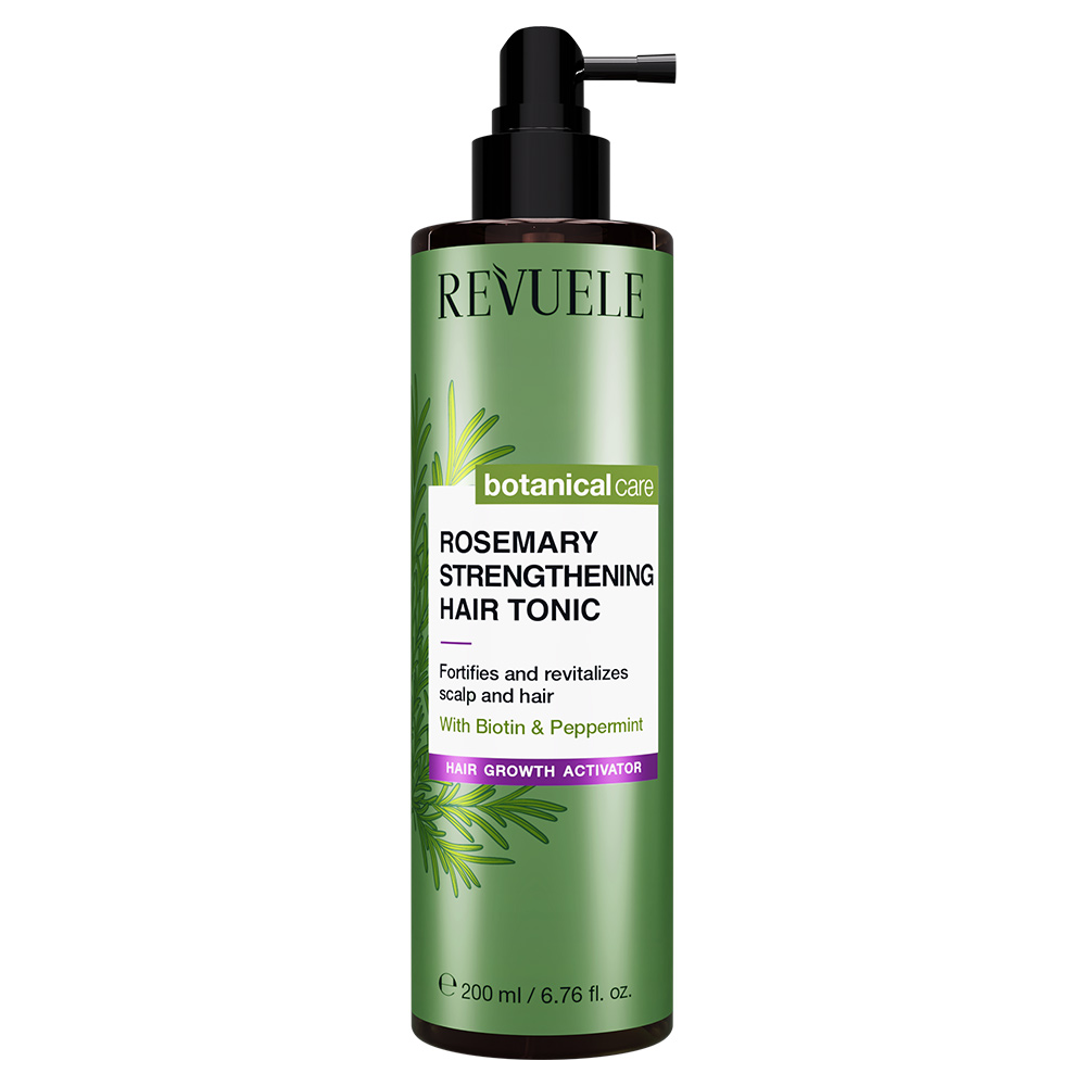 Le Tonique Cheveux Boost Croissance au Romarin de REVUELE est un soin tonifiant sans rinçage formulé pour dynamiser le cuir chevelu et favoriser des cheveux visiblement plus forts. Enrichi en huile de romarin et menthe poivrée, il procure une agréable sensation de fraîcheur tout en stimulant la microcirculation du cuir chevelu. La biotine, la caféine et la vitamine B5 contribuent à fortifier la fibre capillaire, tandis que le jus d’aloe vera et les extraits végétaux de bardane, ortie et sauge aident à apaiser et équilibrer le cuir chevelu. Sa texture légère ne graisse pas les racines et s’absorbe rapidement, laissant les cheveux frais, légers et revitalisés. Utilisé régulièrement, ce tonique aide à redonner vigueur, brillance et densité à la chevelure.Conseils d'utilisation